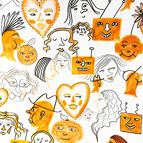 The ‘50 in 15’ is one of their signature power-drawing challenges and it’s a great way to blast through block and get your creativity flowing. You might be terrified of drawing faces and worried about getting it ‘wrong’, or you might LOVE drawing faces but feeling stuck in a style rut and/or fixated on capturing likeness. This challenge gives everybody permission to play and give it a go.